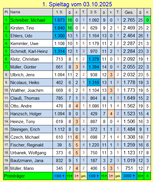1. Spieltag vom 03.10.2025