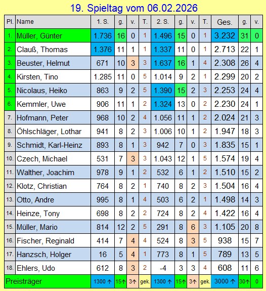 - Günter gewinnt Serie 1, holt sich dann noch einen 3000er Eintrag und gewinnt am Ende klar ohne Verlustspiel.