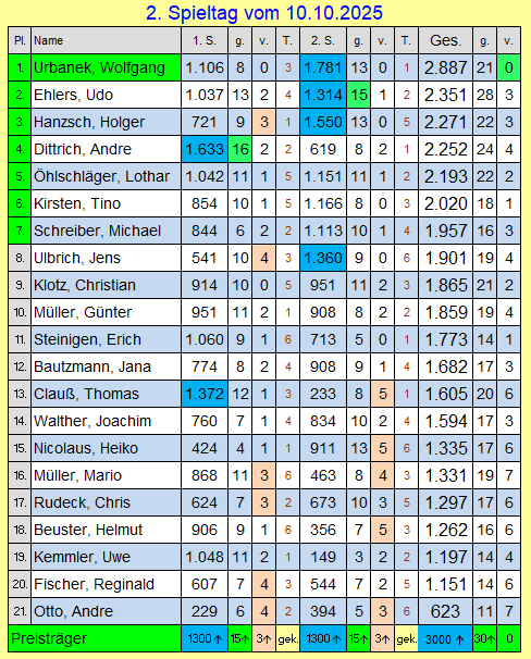 2. Spieltag vom 10.10.2025