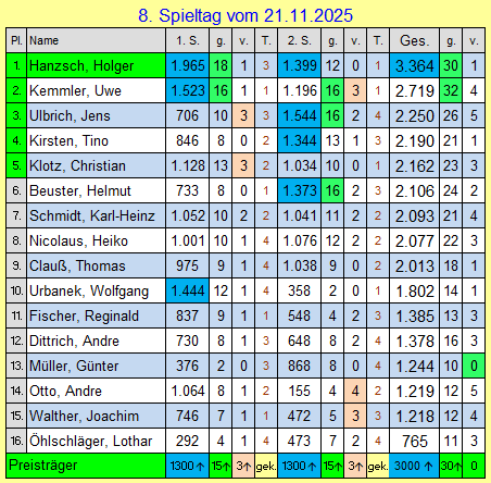 8. Spieltag vom 21.11.2025