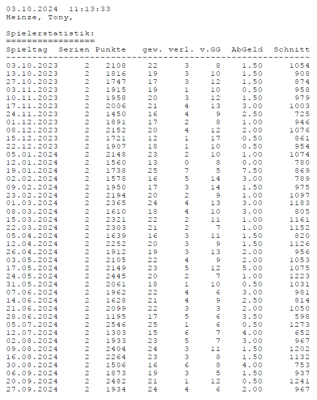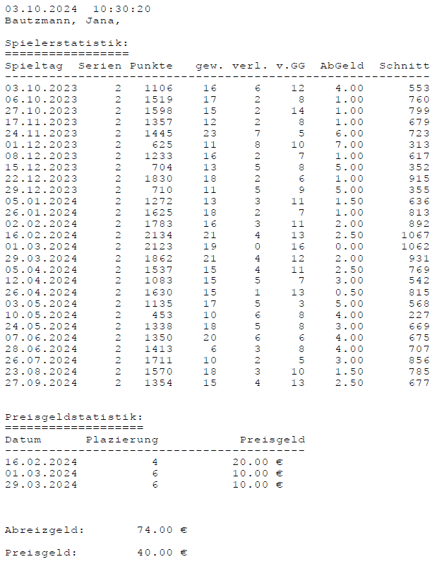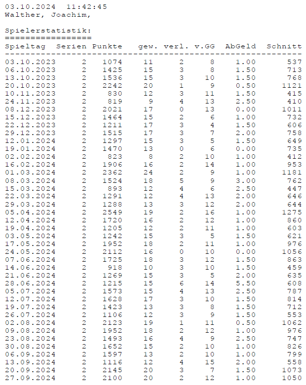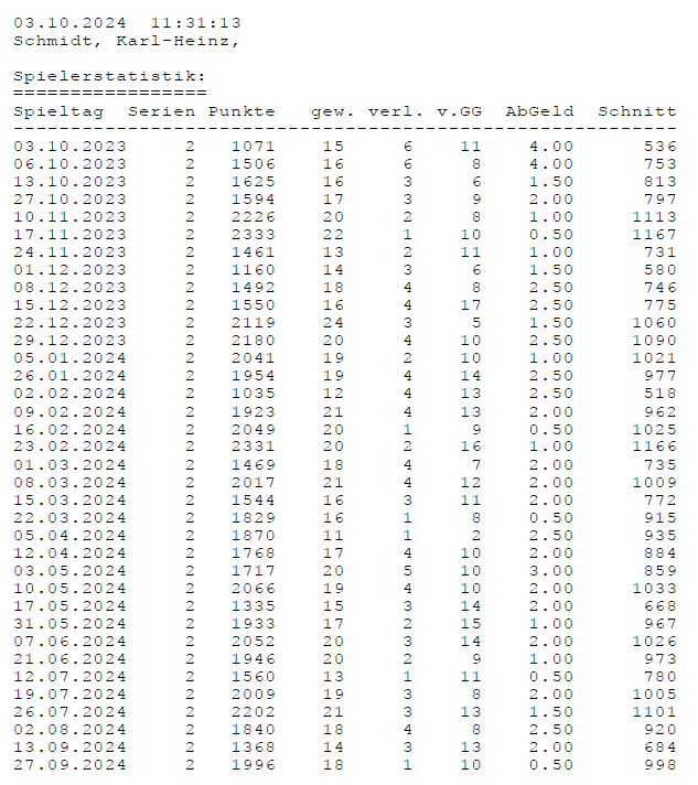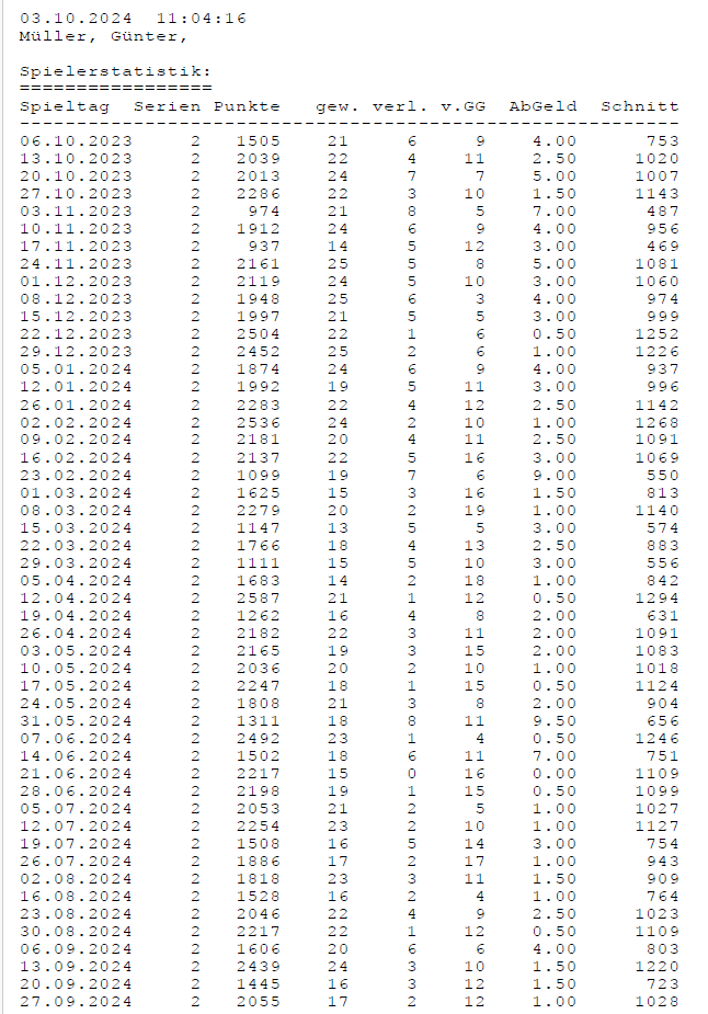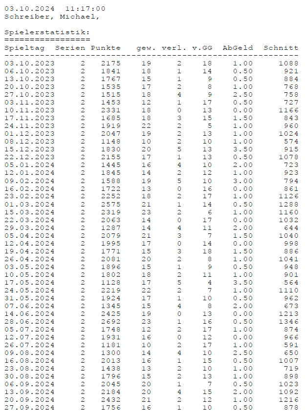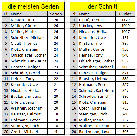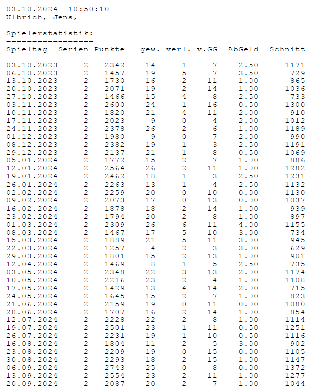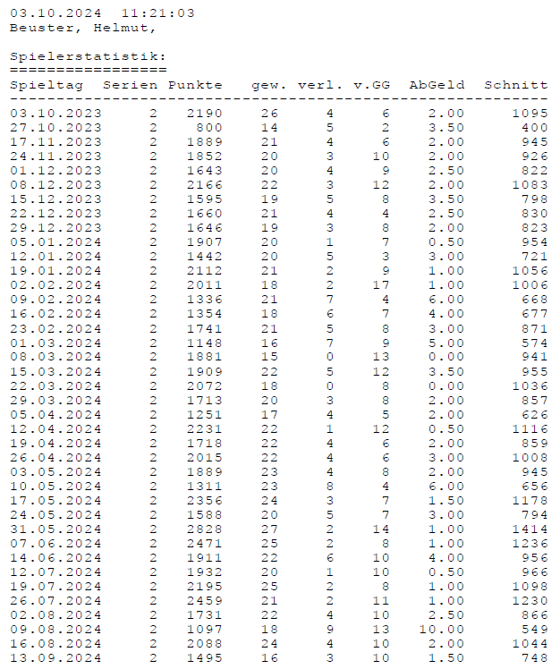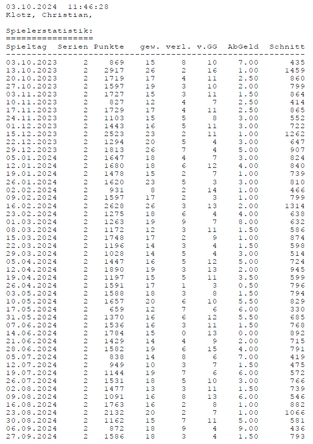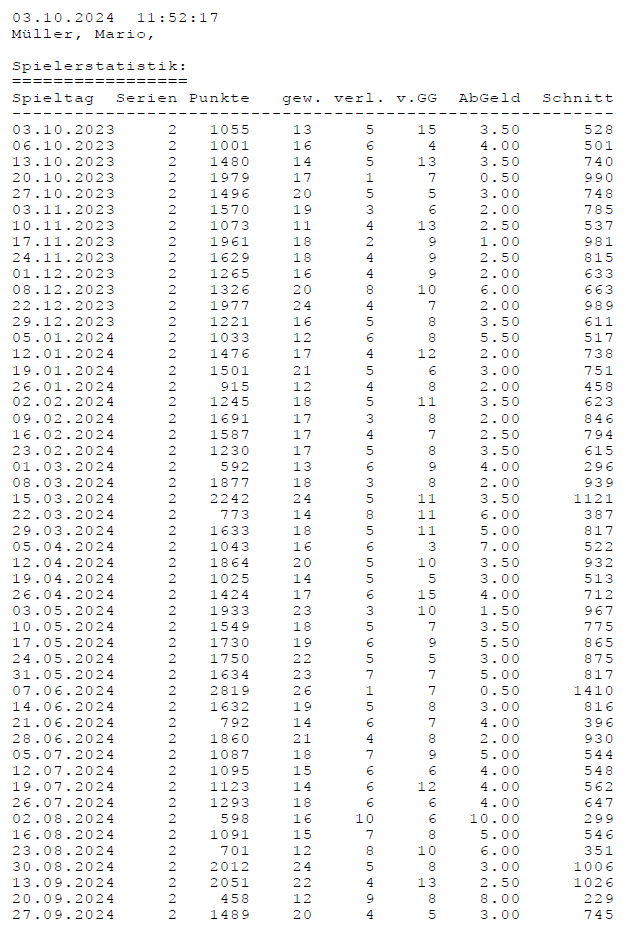 Einzelstatistiken ab Jahrgang 17