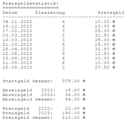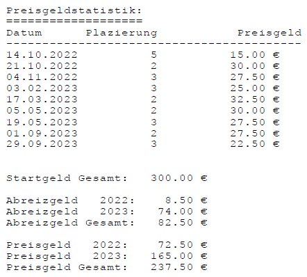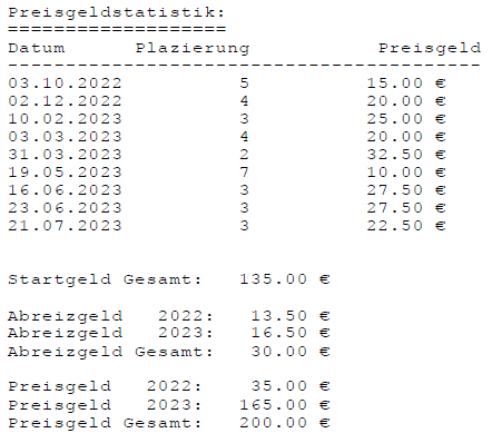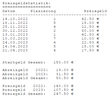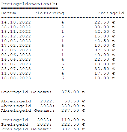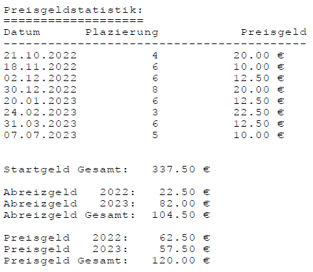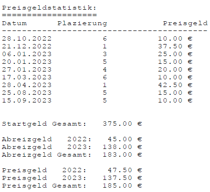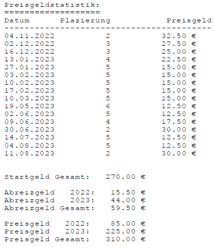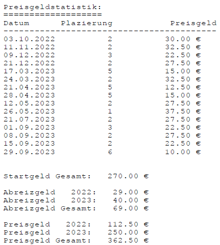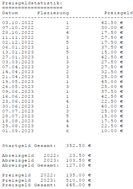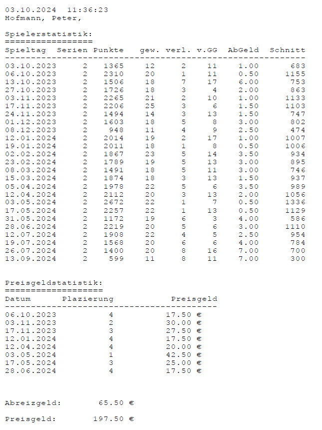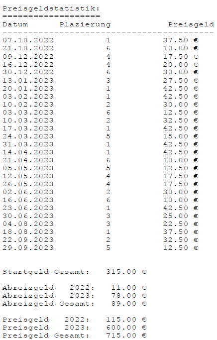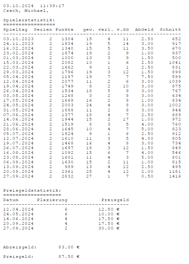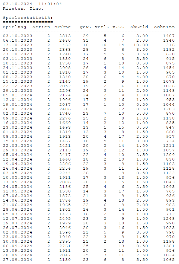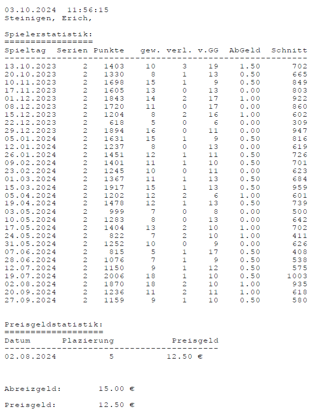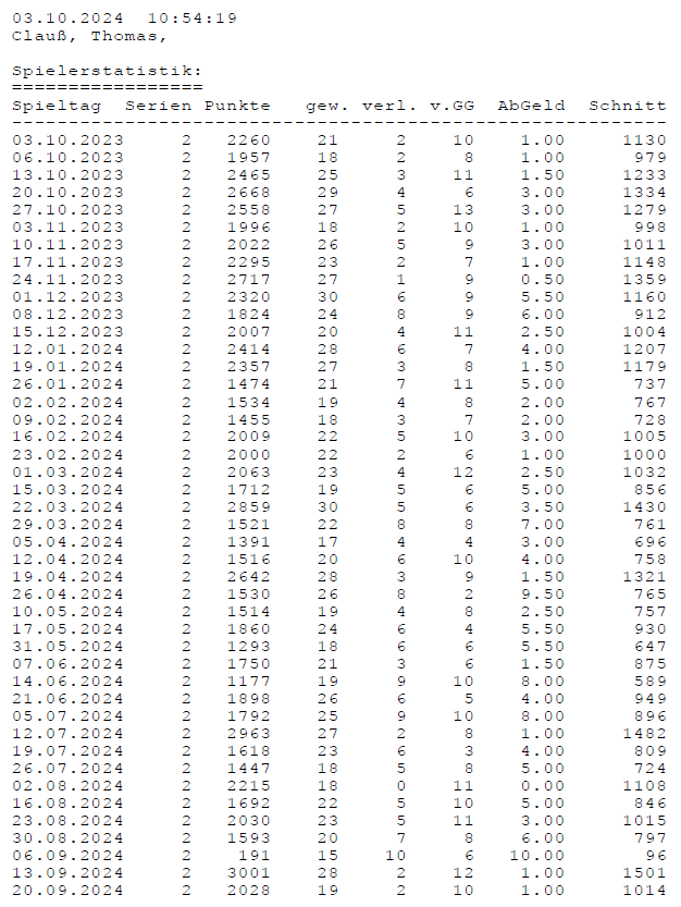 Einzelstatistiken ab Jahrgang 17