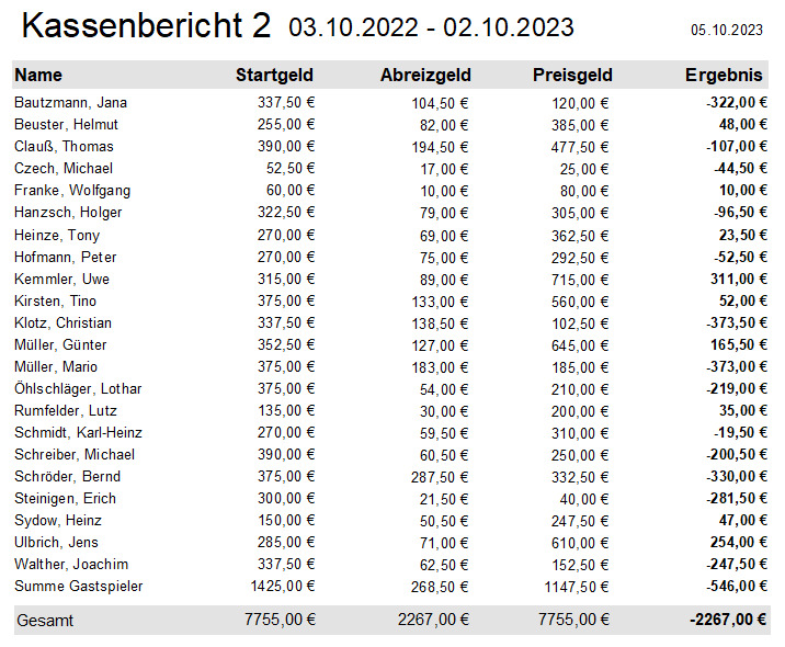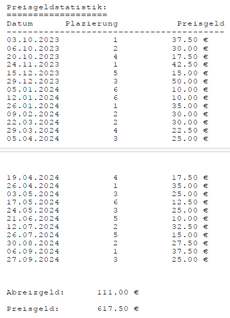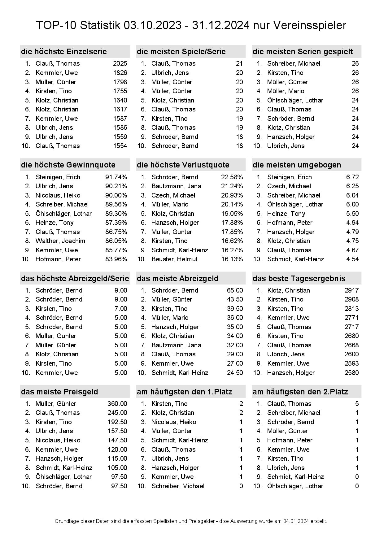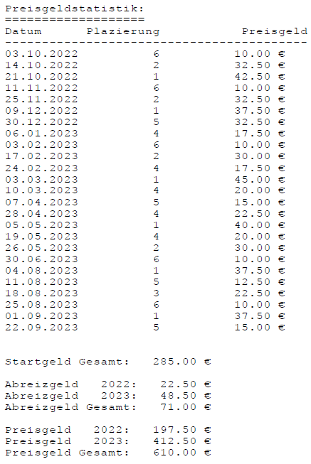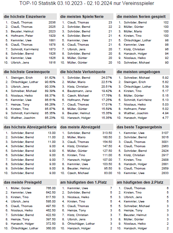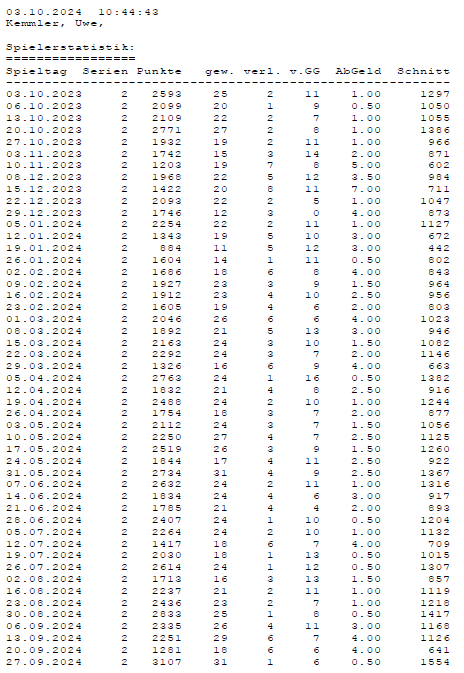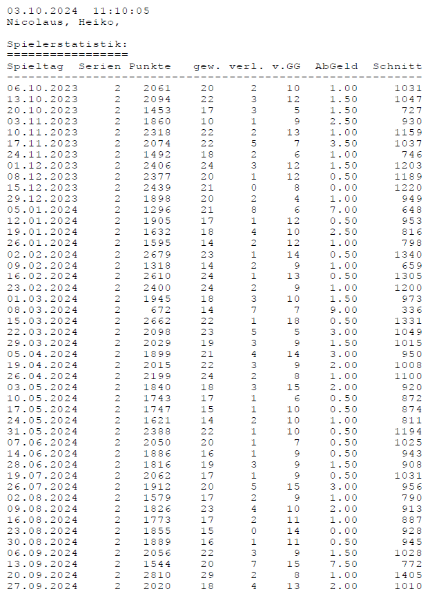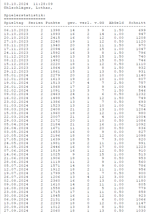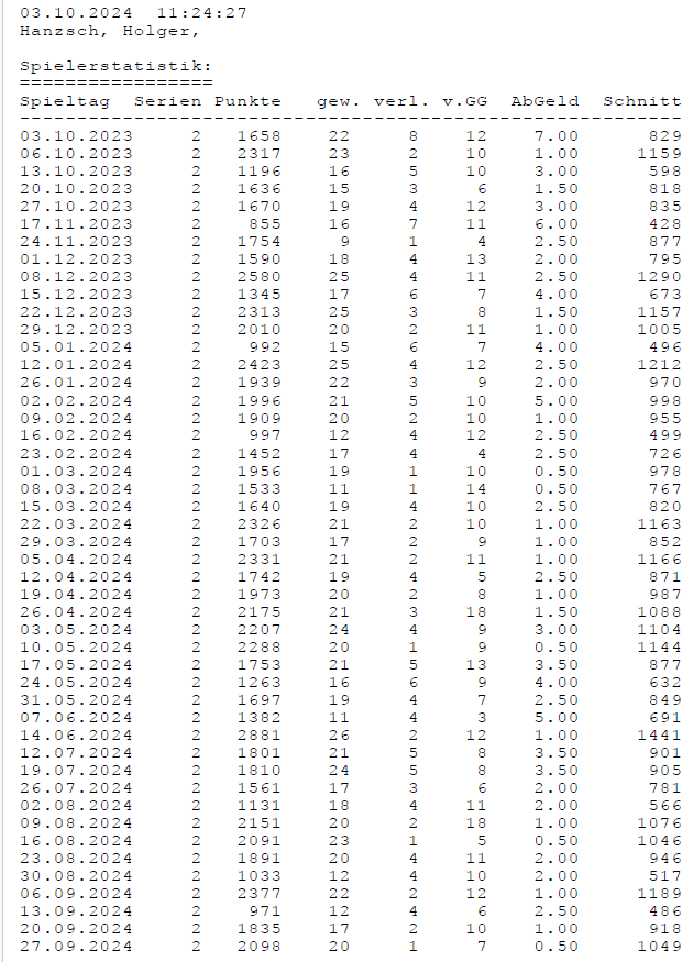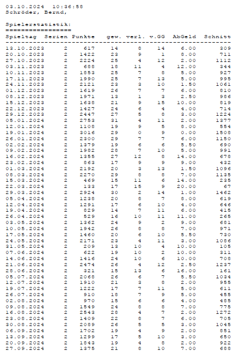 Alle Ergebnisse nach 853 Spieltagen und 13057 Einträgen (06.01.24)